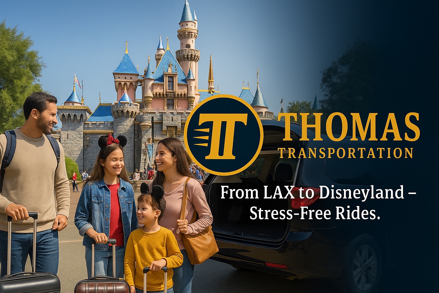 Planning a Disneyland trip should feel magical — not stressful. From airport arrivals to hotel transfers, Thomas Transportation provides comfortable, safe, and reliable private transportation to Disneyland with curbside pickup, luggage assistance, and exclusive first-time booking discounts.